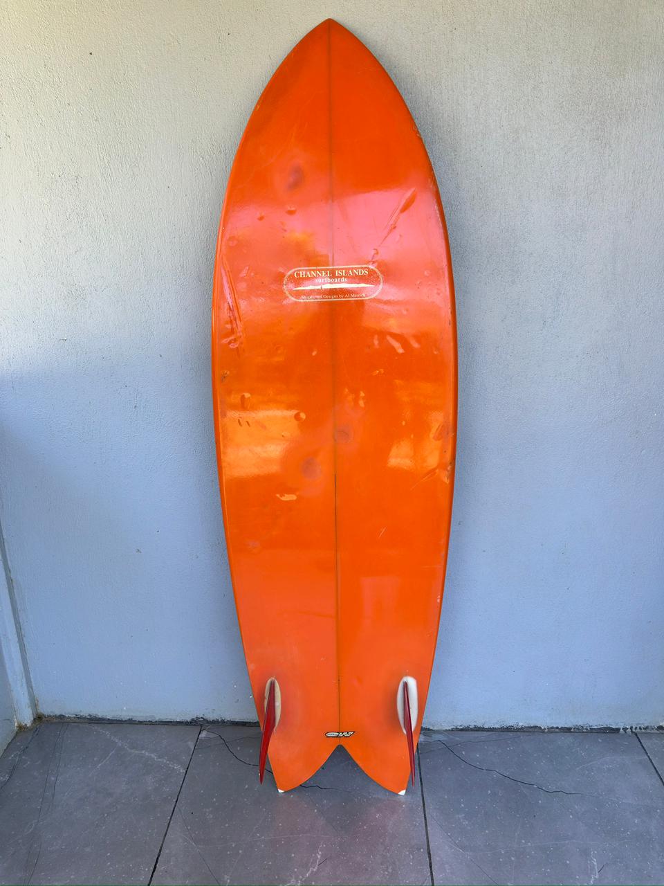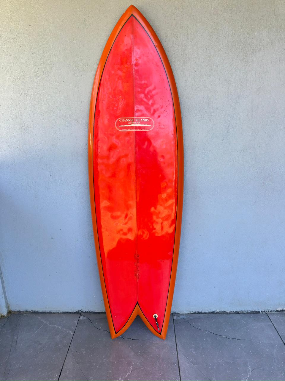 This Channel Islands 5’10 Retro Twin $400 is a classic blend of speed, flow, and timeless style. Designed with a vibrant red and orange resin tint and finished with glass-on twin fins, this board delivers that smooth, fast, skatey feel twin-fins are known for.