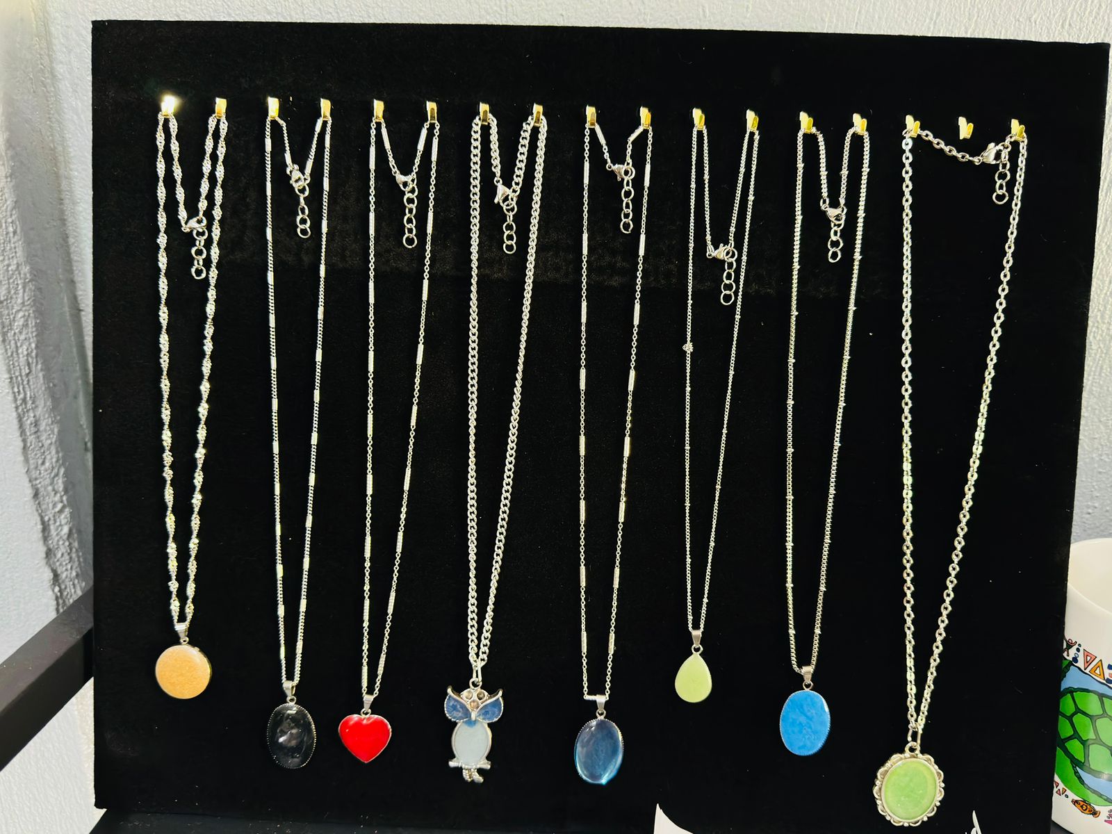 Our necklaces feature pendants made from leftover resin used in the creation of our surfboards — giving new life to every drop of color that once shaped the waves. The result is a unique, one-of-a-kind design where no two pendants are ever the same.